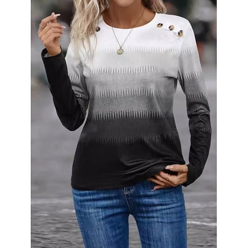 Per donna Camicia Tinta unica Ombre Grafico Elegante Vintage Carino Manica Lunga Girocollo Top Regolari Lavoro Quotidiano Ferie Bottoni Nero Marrone Verde Primavera Autunno Inverno Primavera