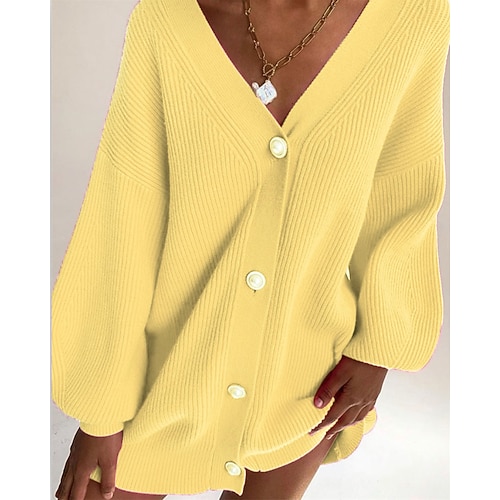 Per donna Felpa Cardigan Streetwear Casual Tinta unica Scollo a V Bottoni Lavorato a maglia Manica Lunga Top Regolari Maglia Quotidiano Ferie Uscire Bianco Giallo Autunno Inverno