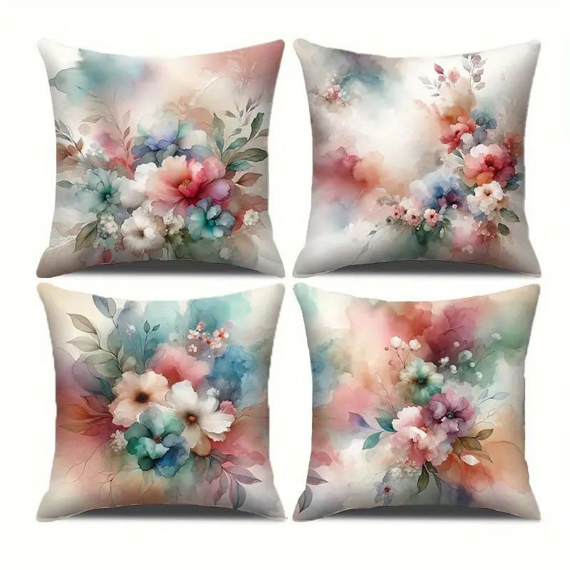 Flowers Double Side Pillow Cover 4PC Soft Decorative Square Cushion Case Pillowcase for Bedroom Livingroom Sofa Couch Chair