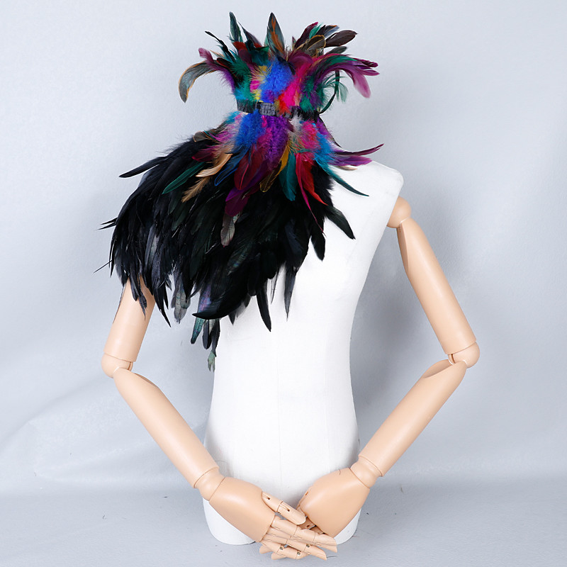 Carnival 2026Rio Carnival Samba Accessories Women's White Feather Cape Shawl with High Collar Brazil Festival Performance Costume