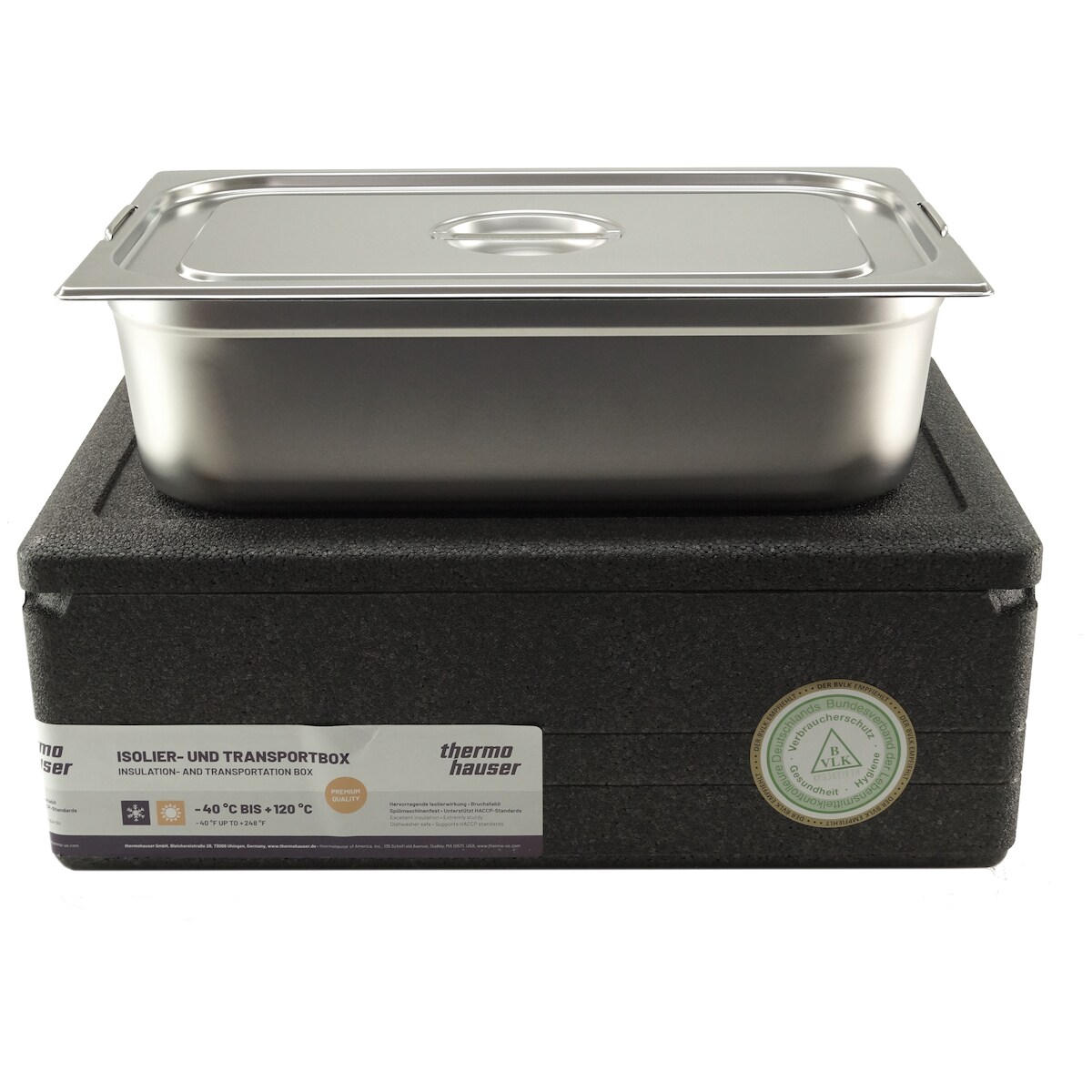 GVK ECO EPP Thermohauser Kühlbox Warmhaltebox Transportbox inkl. GN 1/1 150mm + Deckel mit Fallgriffen