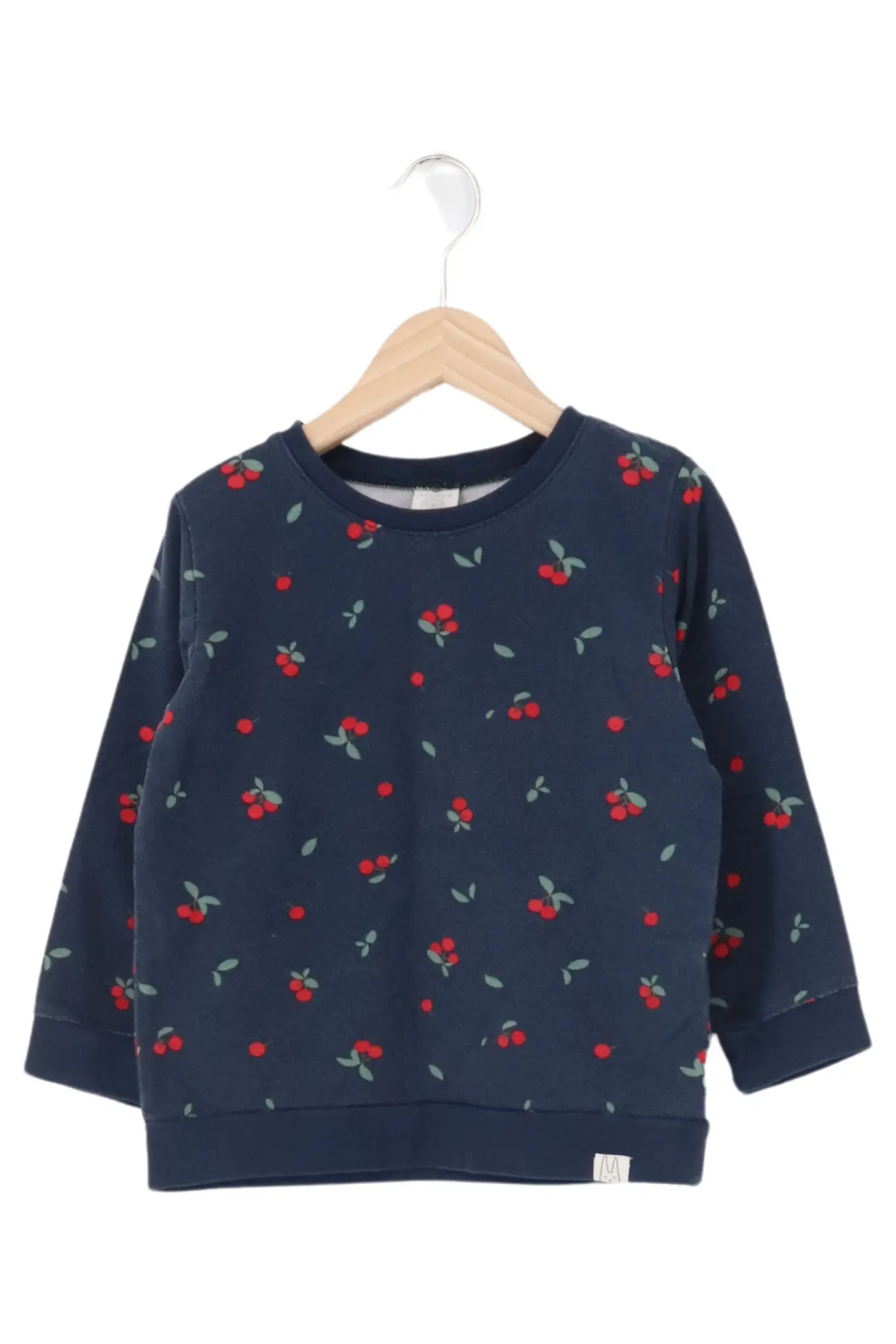 LINDEX Kinder Sweatshirt Gr. 104 Blau Kirschmotiv Baumwolle