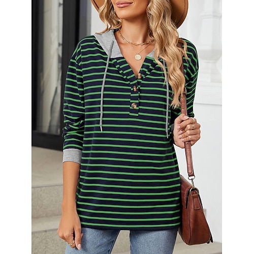 Per donna A strisce Informale Manica lunga Felpa Top regolari Strada Da giorno Bottoni Stampa Blu marino Verde Autunno Inverno