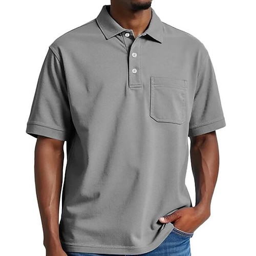 Per uomo Testurizzato Maglia da golf Affari Casuale Classico Manica Corta Moda Moderno Tinta unica Bottoni Estate Primavera Vestibilità regolare Nero Bianco Grigio chiaro Blu marino Arancione Grigio
