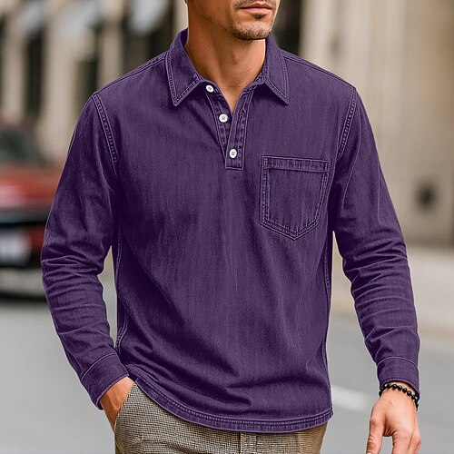 Per uomo Polo Polo da Golf Streetwear Affari Classico Manica Lunga Vintage Essenziale Tinta unica Semplice Tasca Autunno Inverno Interstagionale Vestibilità comoda Nero Rosa Blu marino Blu Viola