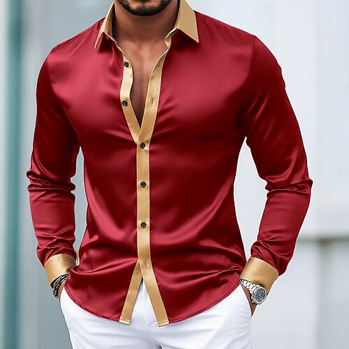Per uomo Camicia Camicia in raso Camicia elegante Camicia casual Camicia con Bottoni Camicia da Ballo Blocco di colori Formale Matrimonio Nero Bianco Vino Blu marino Manica Lunga Bavero Primavera