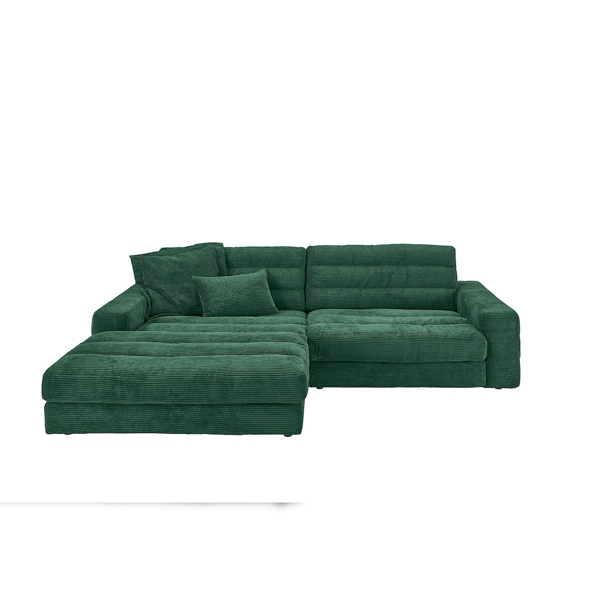 KAWOLA Sofa LANA Ecksofa Cord smaragd Recamiere links