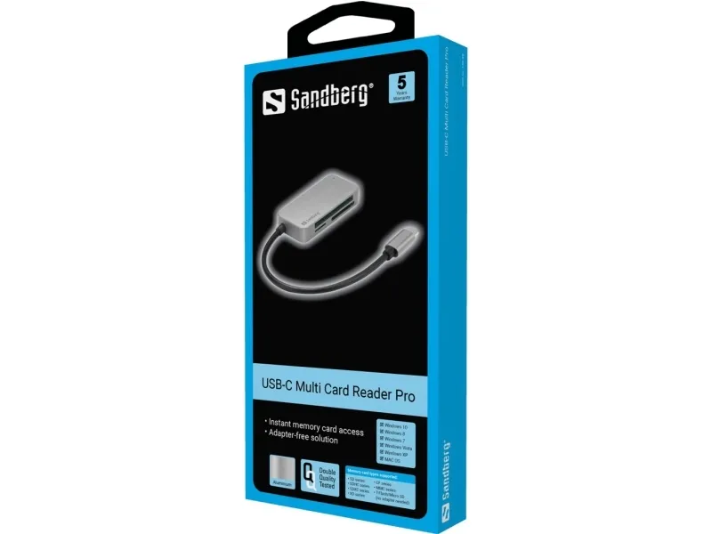 Sandberg USB-C Multi Card Reader Pro - Kortinlukija (MMC, SD, TransFlash, microSD, SDHC, SDXC, CFast Card) - USB-C - USB-C