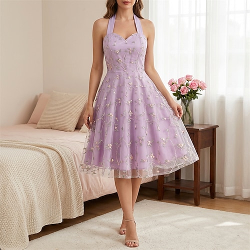 Classico Anni 1950 Hepburn Midi Abito a Linea Abito Swing Vestito Svasato Senza maniche Linea ad A Costume Per donna Carnevale San Valentino Mascherata Vacanza Abbigliamento Quotidiano Addio al