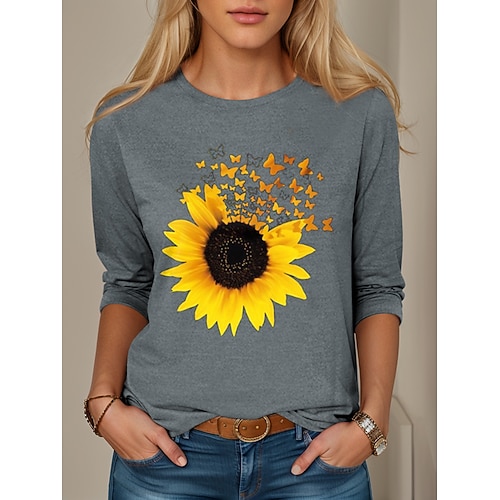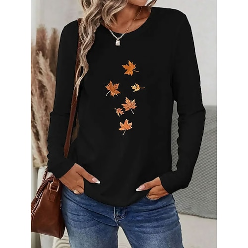 Per donna Maglietta Grafico Piante Vintage Elegante Classico Manica Lunga Girocollo Top Regolari Quotidiano Stampato Nero Bianco Giallo Primavera Autunno Inverno