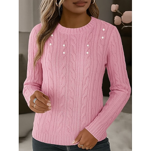 Per donna Felpa Maglione Elegante Carino Casual Girocollo Con perline Manica Lunga Top Regolari Maglia Quotidiano Data Weekend Nero Bianco Autunno Inverno
