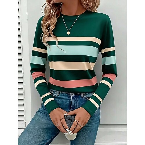 Per donna Maglietta Blocco di colore Stampato Grafico Geometrico Moda Elegante Classico Manica Lunga Girocollo Top Regolari Quotidiano Blu Nero Verde Estate Primavera