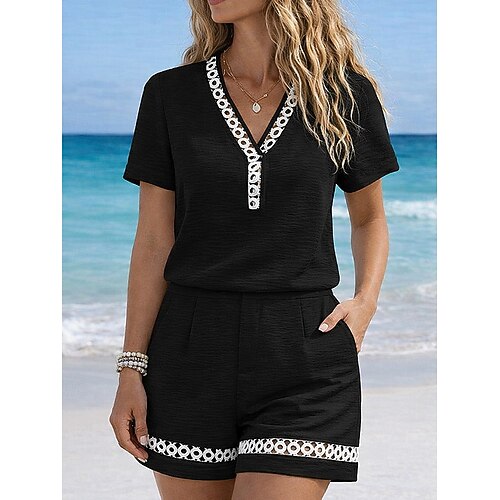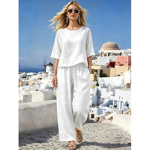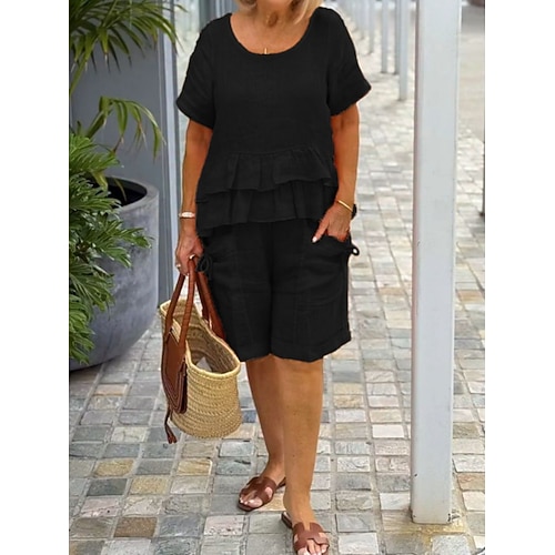 Per donna Set di biancheria in cotone Set da due pezzi Set di Pantaloni Manica Corta Manica 3/4 Colletto a Camicia Semplice Moda Streetwear Casuale Quotidiano All'aperto Blu Nero Bianco Primavera