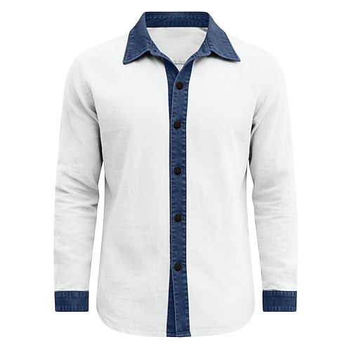 Per uomo Camicia di Velluto a Coste Testurizzato Casuale Sportivo Bavero Manica Lunga Moda Essenziale Blocco di colori Semplice Patchwork Bottoni Autunno Primavera Autunno Nero Blu chiaro Blu