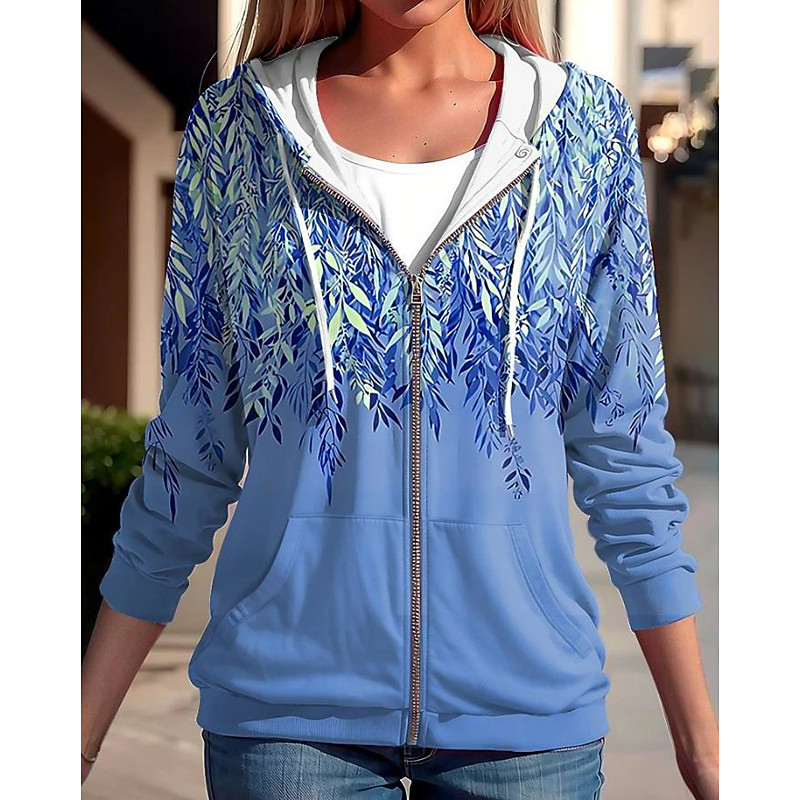 Women's Hooded Sweatshirt Jacket Long Sleeve Zip Up Hoodie With Pocket Lightweight Casual Micro-elastic Oversized Floral Active Vintage Sports Drawstring Front Pocket Blue Fuchsia Green Spring Fall