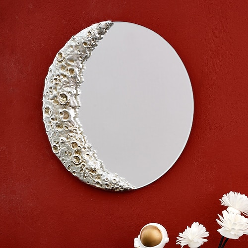 1 ciondolo decorativo a forma di cratere lunare in resina con uno specchio a forma di cratere lunare dal design creativo appeso alla superficie, adatto per la decorazione murale in soggiorni, studi e