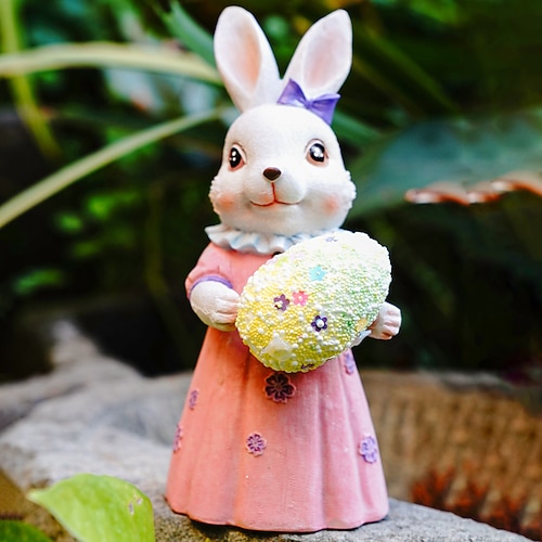 statua in resina di coniglietto pasquale, graziosa statuina di mini coniglio, scultura di animali dei cartoni animati per la domenica di Pasqua, decorazioni primaverili per il giardino di casa,