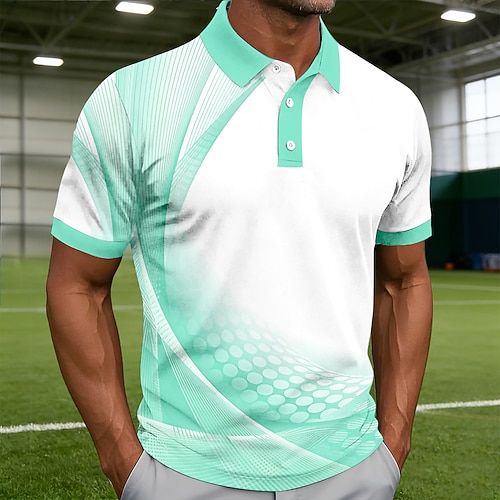 Per uomo Geometrico Linea Polo Sportivi Manica Corta Magliette polo Camicie con Colletto Casual Athleisure Abbigliamento quotidiano Stampa 3D Bottoni Primavera Estate Blu Rosa Viola