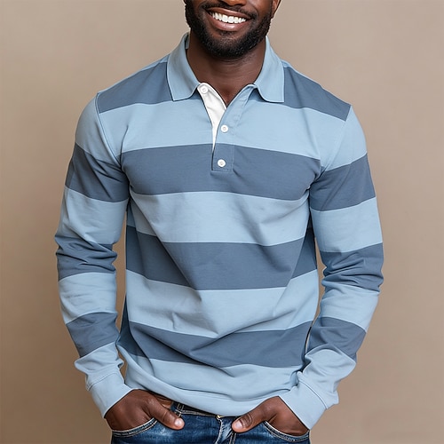 Per uomo Strisce orizzontali Polo da rugby Manica Lunga Magliette polo Camicie con Colletto Abbigliamento Sportivo Casual All'aperto Scuola Athleisure Stampa 3D Primavera Autunno Blu azzurro cielo