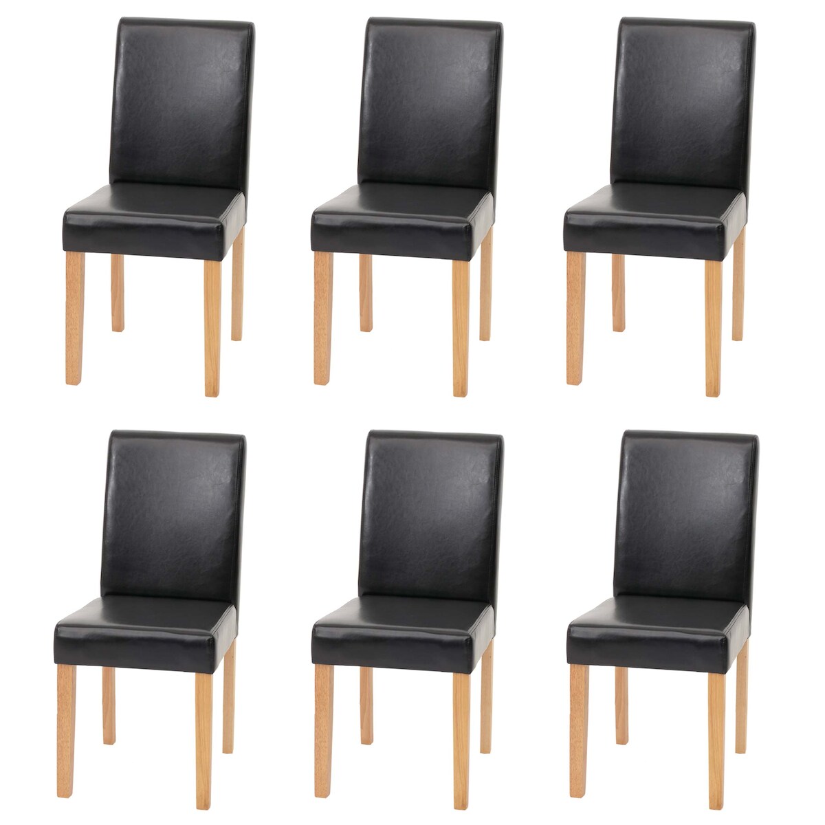 Mendler 6er-Set Esszimmerstuhl Stuhl Küchenstuhl Littau ~ Kunstleder, schwarz, helle Beine