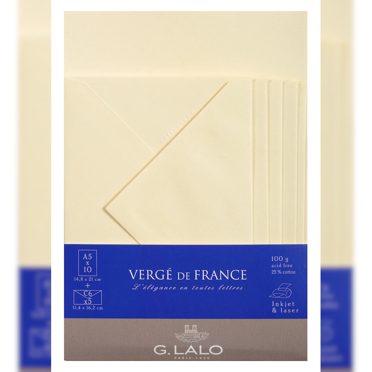 G.Lalo 5x Lalo, Korrespondenzset, 10 Blatt A5 und 5 Umschläge C6, Vergé de France - Elfenbein 61416L