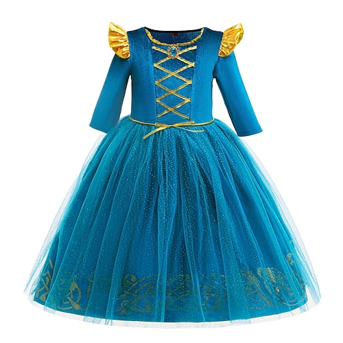 Bambini Ragazze Abito Tinta unica Manica Lunga Performance Feste Costume Dolce Poliestere Primavera Autunno 4-12 Anni BB11SA124 Blu