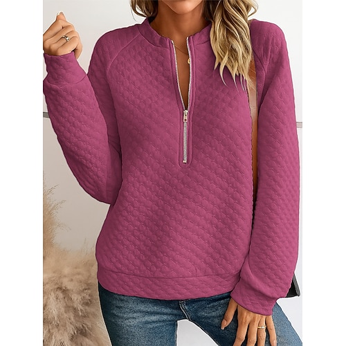 Per donna Set Casual Manica Lunga Mezza zip Top Regolari Rosa chiaro Verde chiaro Vino Rosa scuro Blu Primavera Autunno
