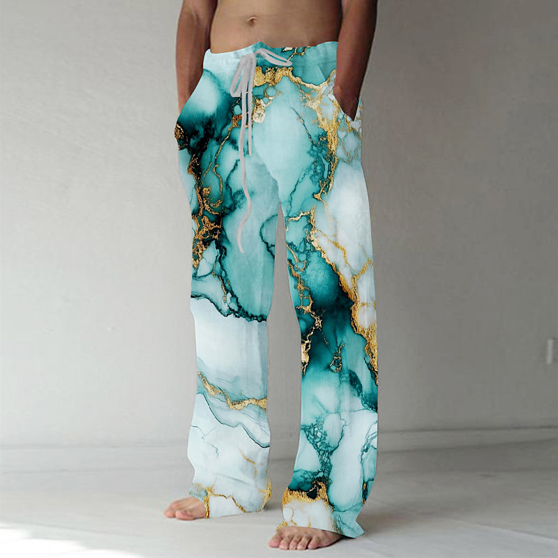 Men's Marble Abstract Liquid Art Trousers Baggy Pants Casual Pants Mid Waist Casual Outdoor Vacation Daily Elastic Waist Wide Leg Drawstring Summer Spring 3D Print Black Yellow Green