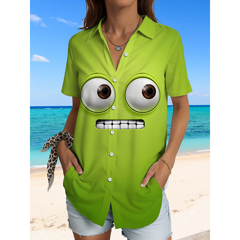 Women's Shirt Long Sleeve Button Down Blouse Graphic 3D Vintage Tropical Daily Sleeveless Short Sleeve Shirt Collar Regular Tops Daily Yellow Pink Green Summer Spring