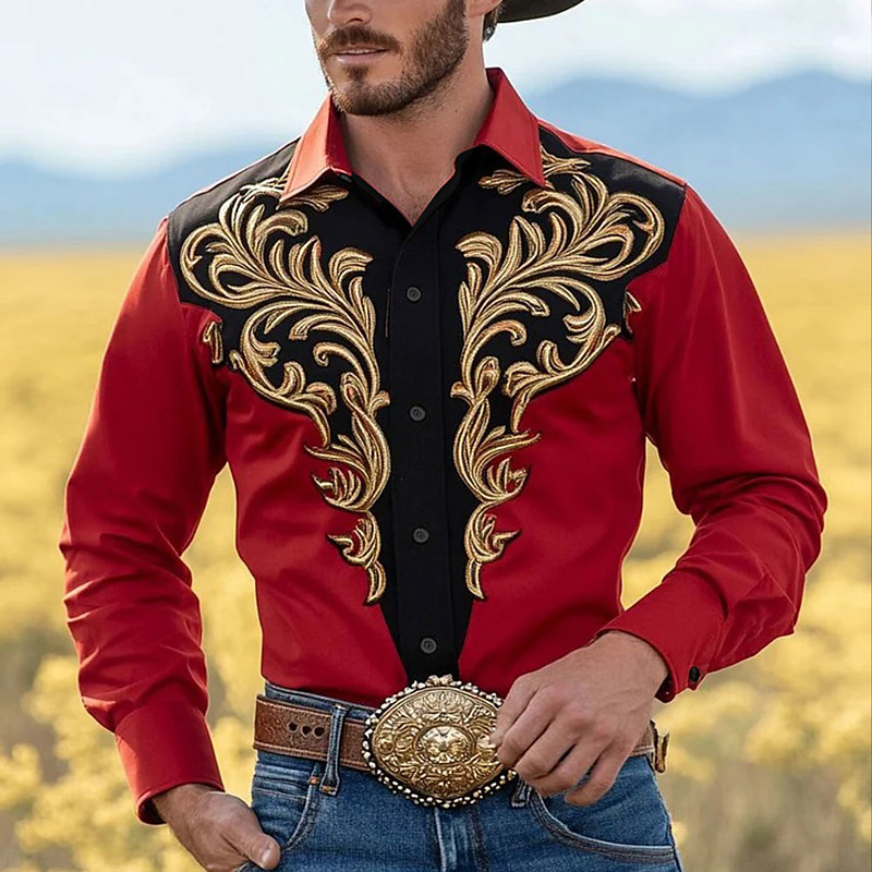 Men's Floral Print Flowers Shirt Western Shirt Cowboy Shirt Long Sleeve Vintage Retro Outdoor Vacation Spring Fall Turndown 3D Print Linen Like Shirt Red Orange Green Gray