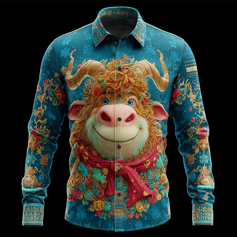 Christmas Men's Animal Cat Alpaca Shirt Button Up Shirt Long Sleeve Funny Outdoor Holiday Spring Fall Turndown 3D Print Collared Shirts Red 1 Red Blue Dark Green