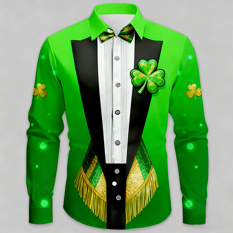 St. Patrick's Day Men's Clover Faux Collar and Suit Design Shirt Button Up Shirt Long Sleeve Fashion Casual Party Holiday Spring Fall Turndown 3D Print Collared Shirts Green 1# Purple Orange Green