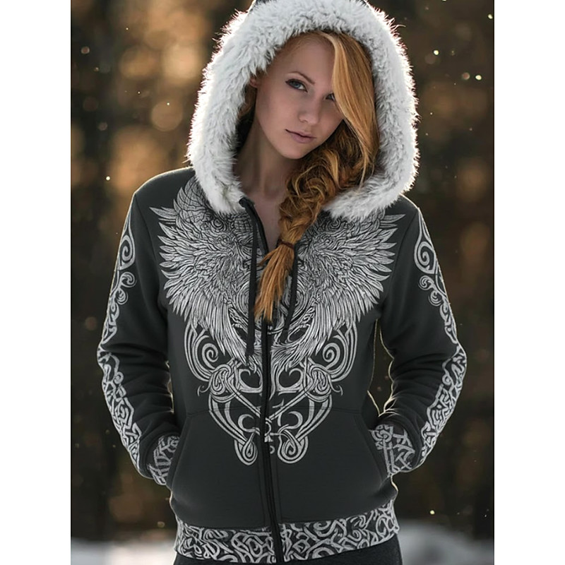 Women's Viking Zip Up Hoodies Graphic Animal Western Ethnic Casual Long Sleeve Hooded Regular Tops Street Casual Zipper White Winter