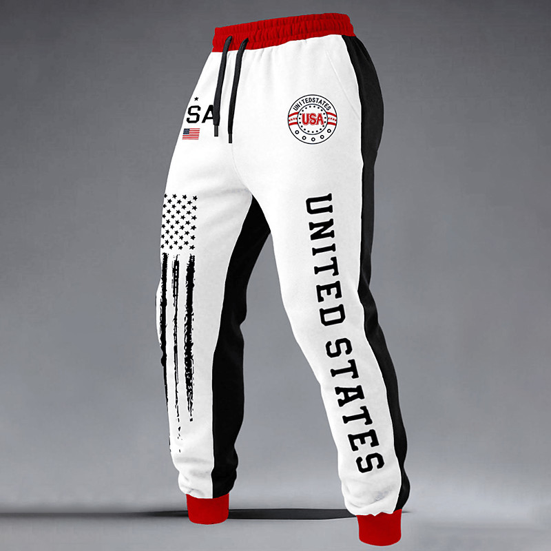 Men's Sweatpants Joggers Trousers Drawstring Pocket Elastic Waist National Flag Comfort Breathable Daily Outdoor America's 250th Anniversary Vacation Fashion Blue Black Micro-elastic