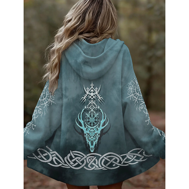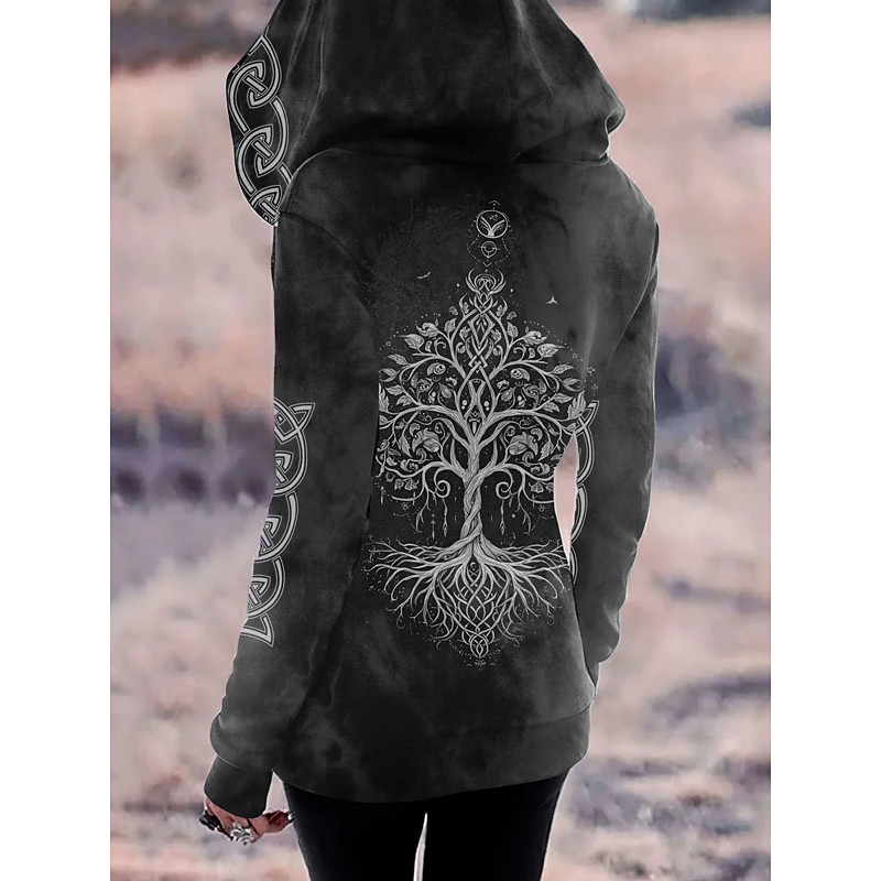 Women's Zip Up Hoodies Graphic Tribal Fashion Casual Long Sleeve Hooded Regular Tops Street Dailywear Zipper Pocket Print Blue Purple Gray Spring Fall