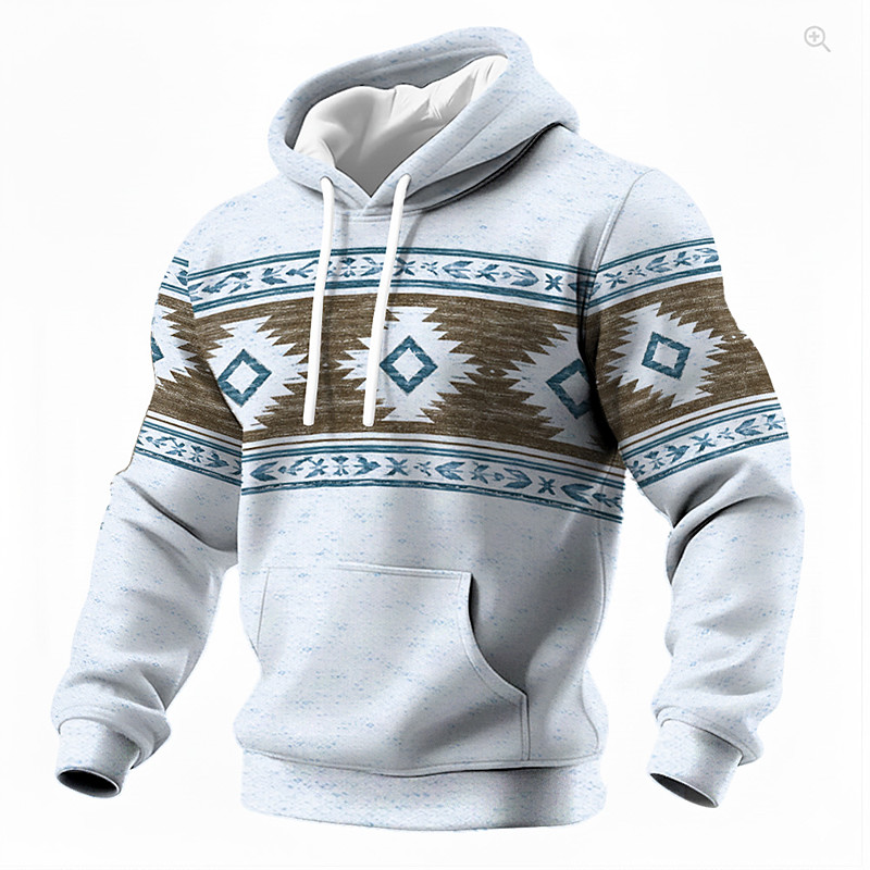 Men Southwestern Aztec Tribal Geometric Pattern Hoodie Pullover Long Sleeve Casual White Beige Hooded Sweatshirt with Pocket Clothing Apparel S M L XL XXL XXXL