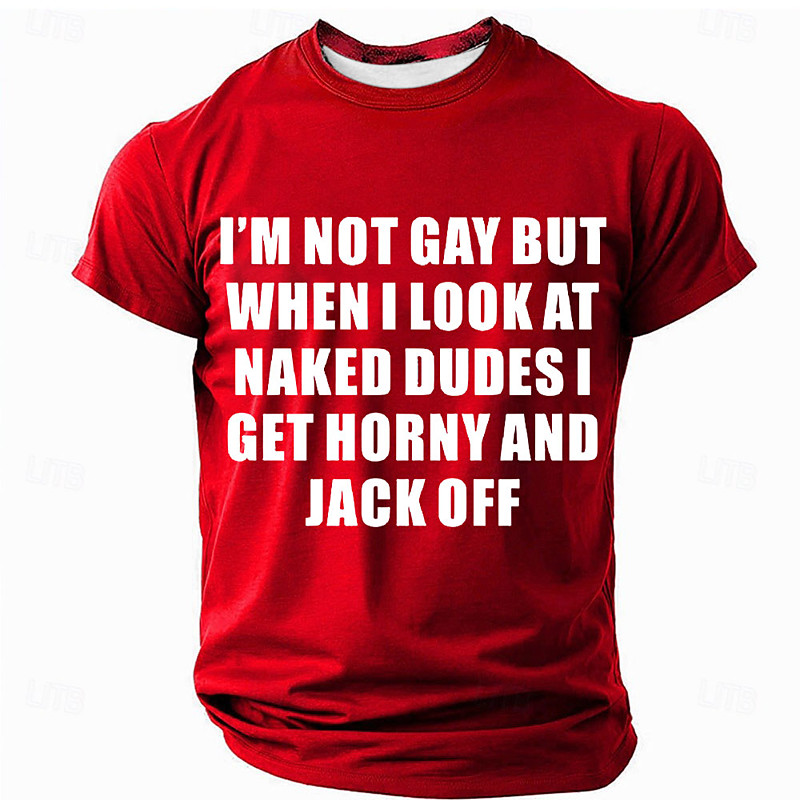 Men's Graphic T-Shirt 'I'm Not Gay But When I Look At Naked Dudes I Get Horny And Jack Off' Provocative Short Sleeve
