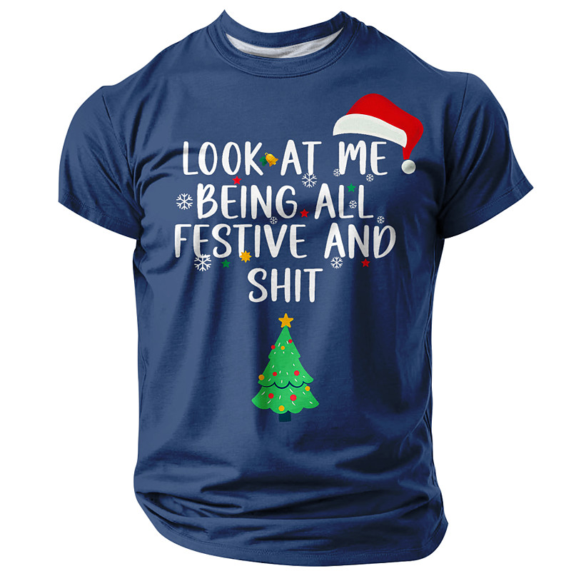 Christmas Funny 'Look at Me Being All Festive and Shit' Men's Short Sleeve Crewneck T-Shirt, Holiday Humor Tee, Gag Gift for Dad Friend