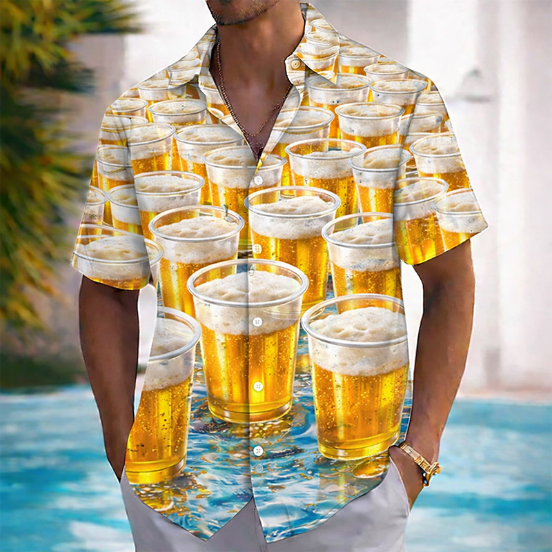 Men's Beer Drink Beverage Summer Hawaiian Shirt Button Up Shirt Aloha Shirt Short Sleeve Hawaiian Vacation Beach Wear Summer Spring Turndown 3D Print Collared Shirts Blue Light Blue