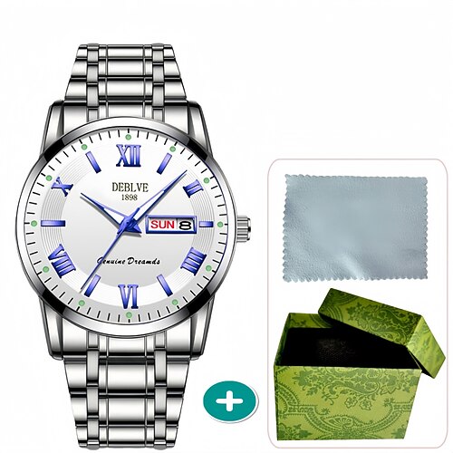 Orologio da polso da uomo di lusso al quarzo, impermeabile, in acciaio inossidabile, con quadrante luminoso e calendario aziendale