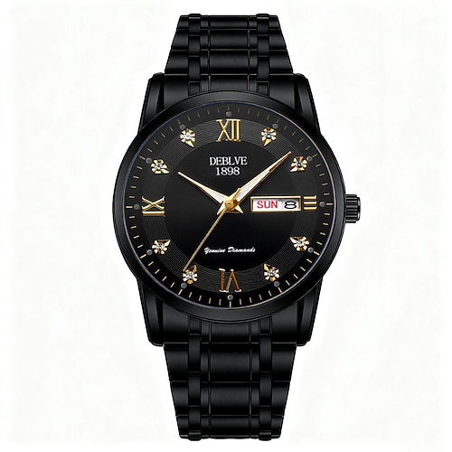 Orologio da polso da uomo avanzato, orologio al quarzo da uomo alla moda, decorazione con strass, doppio calendario, quadrante luminoso, cassa in acciaio inossidabile, cinturino, la migliore scelta