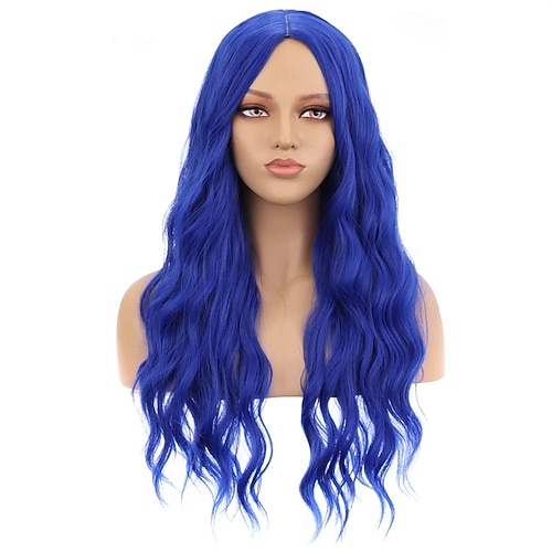 parrucca rosa caldo parrucca magenta lunghe parrucche rosa ondulate ricci per le donne ragazze parte centrale parrucche sintetiche resistenti al calore ad alta densità