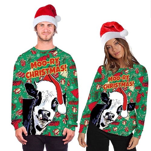 Natale Babbo Natale Gatto Cane Maglione di Natale Felpa Pullover Divertente Per Da coppia Per uomo Per donna Per adulto Natale Carnevale Capodanno Stampa 3D Feste Casual / quotidiano