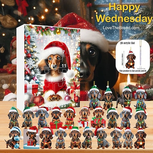ornamenti per calendario dell'avvento di natale, 2d acrilico simpatico cane 24 pezzi kit di ornamenti natalizi regalo 24 giorni conto alla rovescia mini albero appeso ornamenti natalizi per