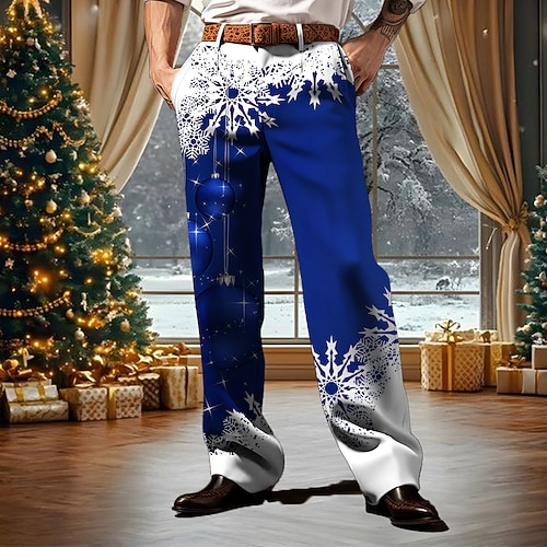 Natale Per uomo Fiocco di neve Pantaloni da tuta in pile Vita elastica con coulisse Casual All'aperto Casa Abbigliamento da sera Tasca Termico Inverno Stampa 3D Nero Rosso Blu