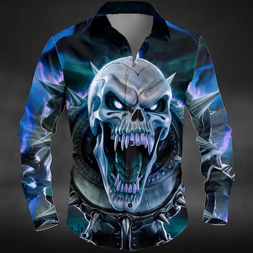 Per uomo 3D Print Camicia Camicia con bottoni Manica lunga Di tendenza Originale Informale Esterno Strada Informale Estate Primavera Collo ripiegabile Stampa Bottone giù Nero Vino Blu Marrone Verde
