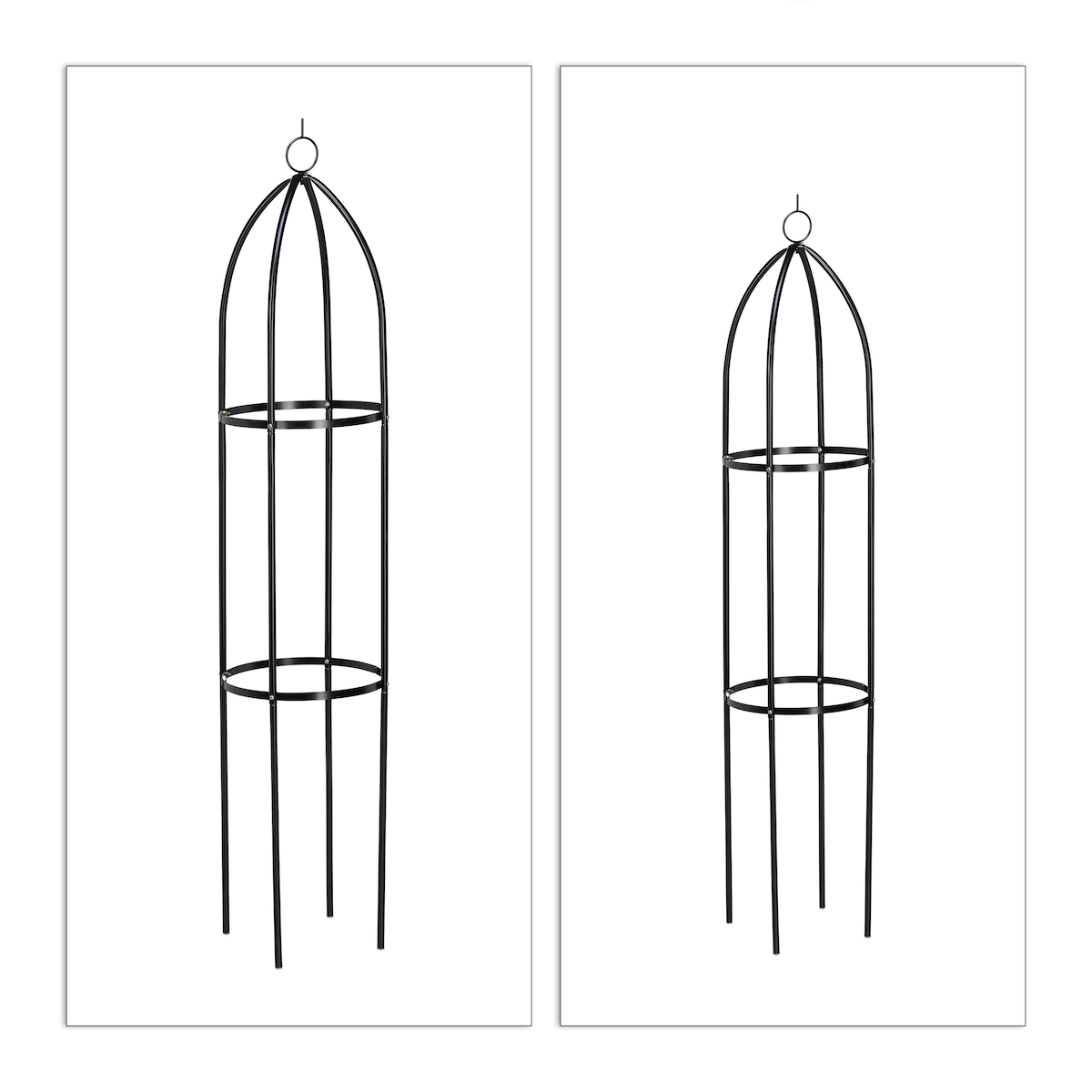 Relaxdays Rankturm 2er Set, freistehend, Rankhilfe für Rosen, Kletterpflanzen, wetterfest, H: 139 cm & 149 cm, schwarz
