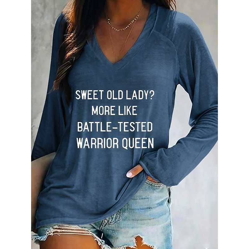 Women's T shirt Long Sleeve V Neck Long Sleeve Graphic Casual Basic Print Regular Tops Daily Weekend Gray Fall Winter Prefall