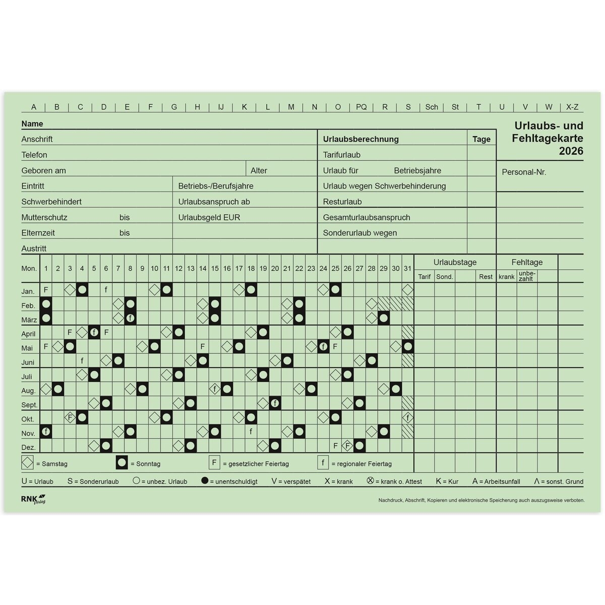 RNK Urlaubskarte 2026 A5 grün 10 Stück