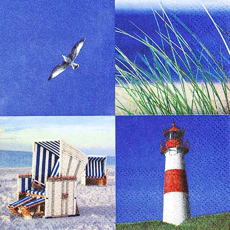 Home Fashion, Maritime Collage, Cocktail-Servietten aufgefaltetes Maß 25 cm x 25 cm, im Viertelfalz, 20 Stück pro Pack